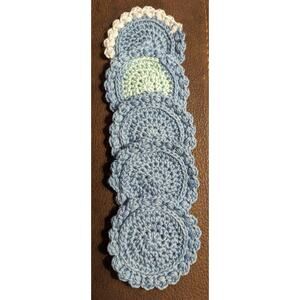 Hand Crocheted 100% Cotton Aqua Teal, Blue Colorblock Potholder Coaster Set