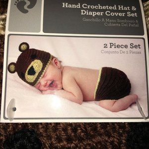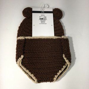 Hand Crocheted Hat And Diaper Cover Bear Sz 0-9 Months Brown Infant Baby Photo