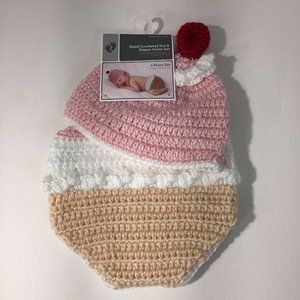 Hand Crocheted Hat And Diaper Cover Ice Cream Sz 0-9 Months Infant Baby Photo