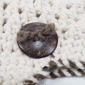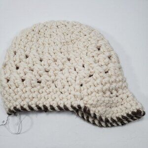 Hand Crocheted Newsboy Hat Cap Handmade Beige w/Large Brown Button NWT