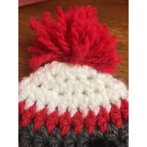 Hand Crocheted Sock Monkey Winter Hat Red Grey