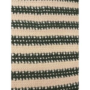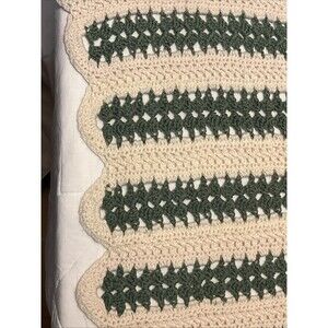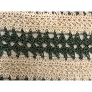 Hand Crocheted Throw Afghan Blanket 45x72 White Sage Emerald Grandma Boho Vtg