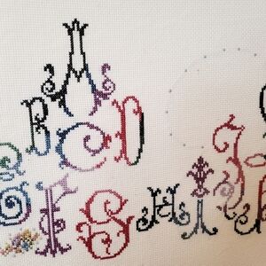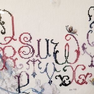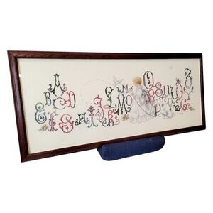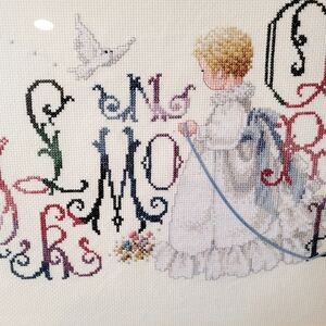 Hand Crosstitched Victorian Alphabet with Baby Girl 27.5 x 11.5 UNFRAMED