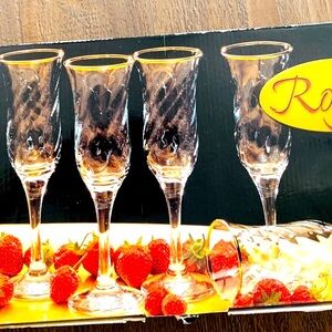 Hand Decorated 24 karat Gold 6 champagne flutes from Turkey
