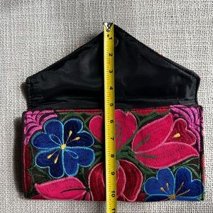Hand embroidered floral clutch, very vibrant and colorful. Zipper pocket inside.