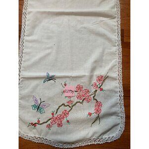 Hand Embroidered Flower Tree with Butterflies 16x42