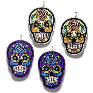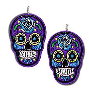 Hand Embroidered Halloween Sugar Skull Day of the Dead NOLA Statement Earrings