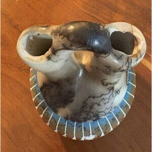 This exquisite hand-etched horse hair Navajo wedding vase stands at 5 1/2" high and is a true masterpiece crafted by the renowned Sam. The intricate details of the design showcase the rich culture and heritage of the Navajo people, with each curve and line telling a story that reflects their unique traditions and values. Made with the utmost care and attention to detail, this vase is a one-of-a-kind piece that will make a beautiful addition to any collection. Its provenance may not be known, but its beauty and cultural significance are undeniable, making it a must-have for anyone who appreciates the art and history of Native American culture.