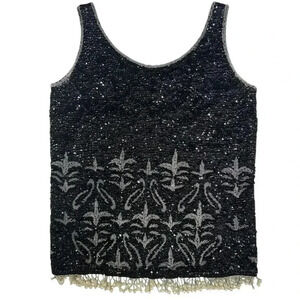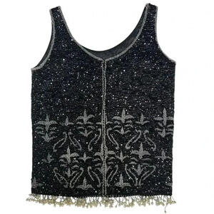 Hand Full Fashioned Gorgeous Silver & Black Hand Beaded Wool Tank Zip Up Back M