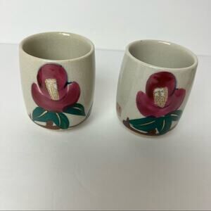 Hand Glazed Hand Painted Taupe Floral Sake Set of 6