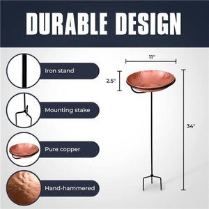 🧿Decorative and stylish: The pure copper bowl on the bird feeders for the outside is adorned with hand hammered impressions, instantly elevating your backyard, patio, garden, outdoor space, or nursery. Its lightweight design allows for easy movement to find the ideal spot for your feathered friends. The bird bath provides not only an outdoor or window decoration but also a resting spot for birds between feedings.