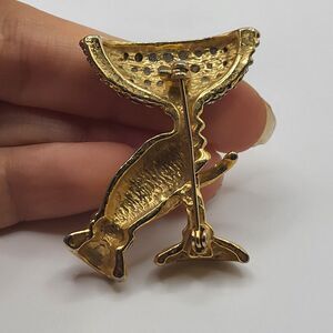Hand Holding Goblet Glass 2in Brooch Pin | Materials: gold metal alloy, white rhinestones | Length: 2in | Clasp: brooch pin | Signed? no | Excellent vintage condition