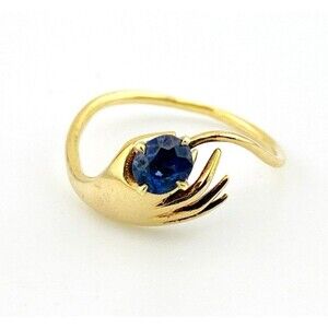 Hand Holding a Sapphire 14k Gold Ring - Estate Vintage Figural Jewelry