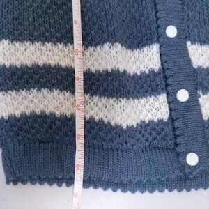 Hand Knit Button Front Soft Striped Sweater Cardigan Embroidered Blue Girls 3-4