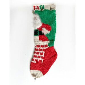 Hand Knit Christmas Stocking Large 21" for EVAN Santa Claus Fuzzy Beard Bells