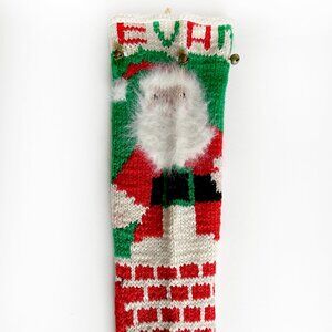 Large EVAN Santa Claus Christmas Stocking Hand Knit Vintage with fuzzy beard and bells. My aunt Mimi knitted this beautiful Christmas stocking for my brother, Evan, in 1965. She was a great knitter. This is a large stocking. It measures 21" long and almost 7" wide. Great to put lots of stocking stuffers and presents into. This is a one of kind stocking and would be a special addition to your Evan's Christmas holiday.