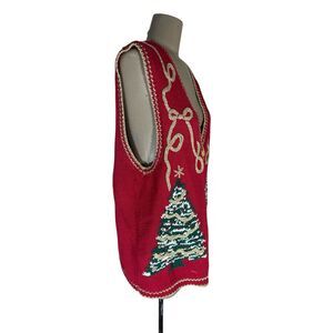Hand Knit Christmas Tree Cardigan Sweater Vest