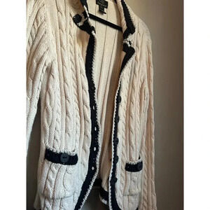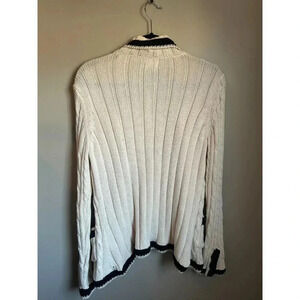 Hand Knit Chunky White and Black Button Up Cardigan Sweater, Fresh Produce, Size m/l