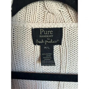 Hand Knit Chunky White and Black Button Up Sweater, Fresh Produce, Cardigan