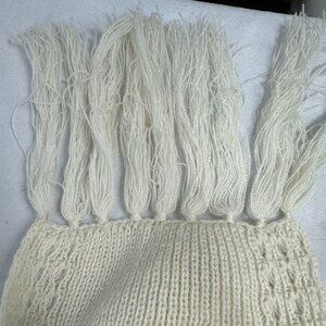 Hand Knit Cream Acrylic Scarf Fringe Textured Pattern Lightweight Winter Wear