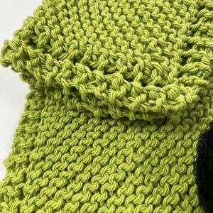 Hand Knit Dish Cloth Set of 2 Plus Scrubbie 100% Cotton Chartreuse Green Black