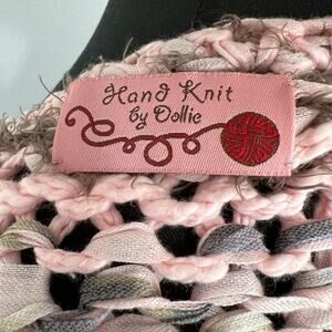 Hand Knit by Dollie Pink Brown Chunky Crochet Knit Sweater.