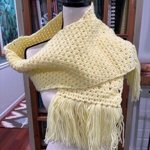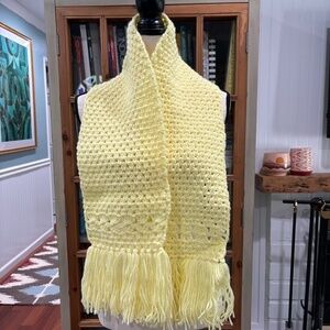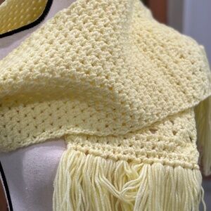 Add a bright spot of dopamine fashion to your winter outerwear with this hand knit lemon yellow scarf~