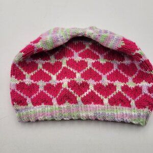 Hand Knit Handmade Hat Beanie Girls 3T - 10Y Pink Hearts Colorful KT019 - 2