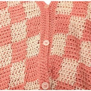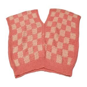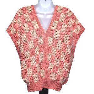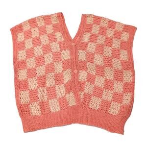 Hand Knit Handmade Pullover Sweater Vest Crop Top Size M Peach Checkerboard NEW