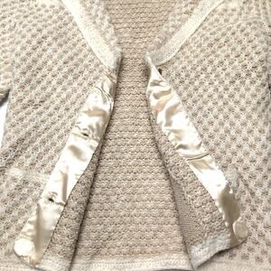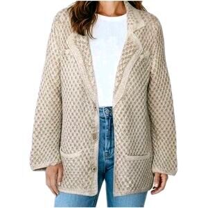 Hand Knit Handmade Sweater Blazer Cardigan Women's Size M Tan Cream Pockets NEW