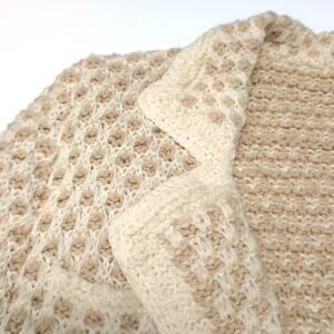 Hand Knit Handmade Sweater Blazer Cardigan Womens Size M Tan Cream Pockets NEW