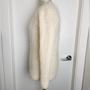Creamy Ivory White Mohair Lace Stitch Knit Long Sleeve Crewneck Jumper Sweater, by Otter.
