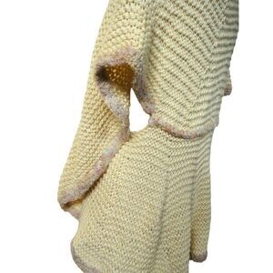 Hand Knit OOAK Sweater Shrug Open Front Cardigan Curved Design Cream One Size