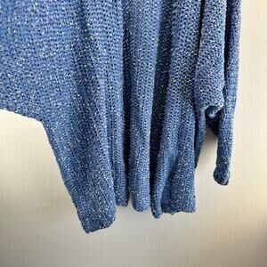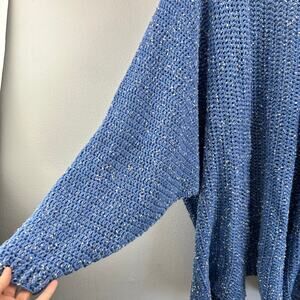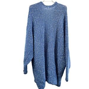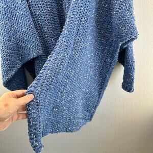 Hand Knit Oversized Cardigan Sweater Open Front Blue Speckled OS
