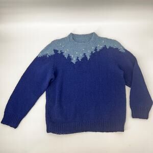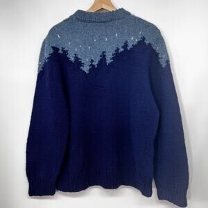 Hand Knit Starry Night Sky Wool Sweater 40/M Blue Skyline Trees Mountains Unisex