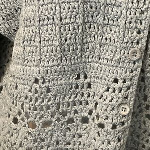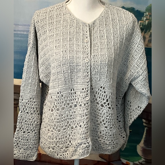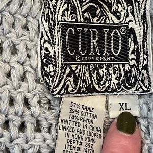 Beautiful, hand knit, pale blue, button up, cardigan sweater from. Curio in size XL.