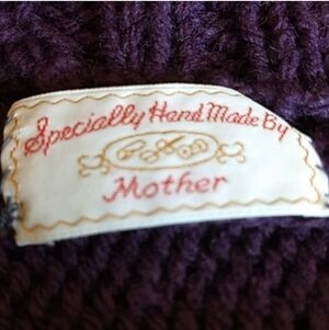 Ladies hand knit ling sleeved sweater with an empire waist, tunic length, plum colored. Would work as a maternity top. New, never worn. Fits Size Small. Approximate flat measurements: Bust - 18½ inches, Waist - 15 inches, Length from Shoulder to Hem - 31½ inches, Sleeve Length - 21 inches.