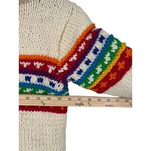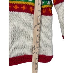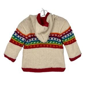 Hand Knit Sweater Kids Full Zip Hooded Fleece Lined Large Multicolor Pockets