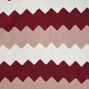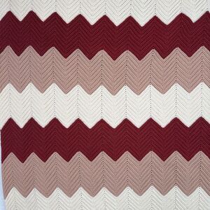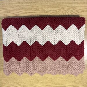 Hand Knit Throw Afghan Blanket Chevron Pattern Red Ivory Pink 48" x 66" Cozy