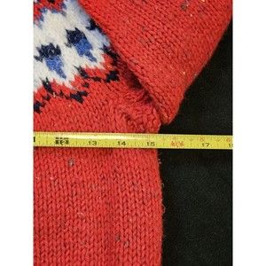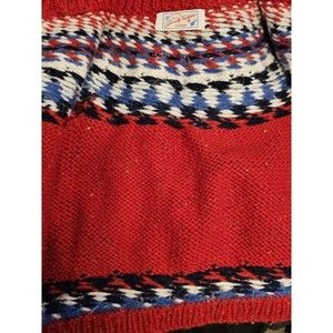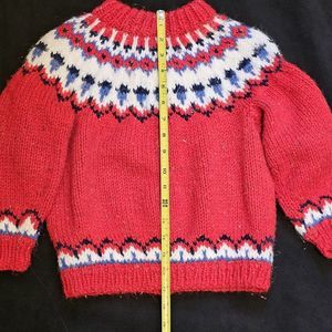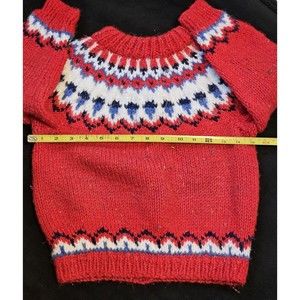 Hand Knit Toddler Sweater Wool Blend Fair Isle Red Crew Neck Unisex Cardigan