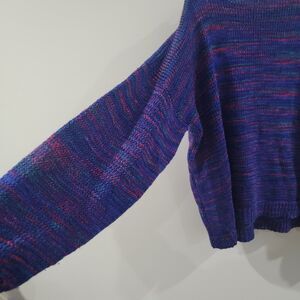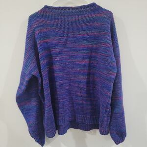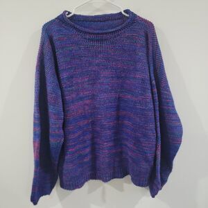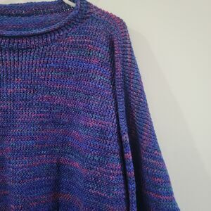 Hand Knit Womens Sweater Size 2X Colorful Knit Purple Cozy Handmade