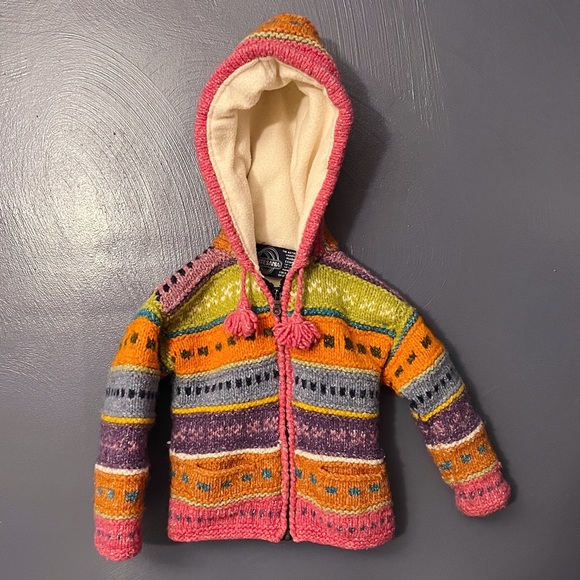 Hand Knit Wool Jacket - Fleece Lined with Zipper & Pockets