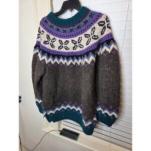 Hand Knit Wool Sweater Women color Ecuador Fair Isle Geometric Chunky