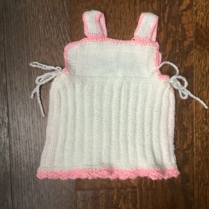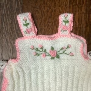 Hand Knitted Dress, 3M, White and Pink, Embroidered Flowers, NWOT
