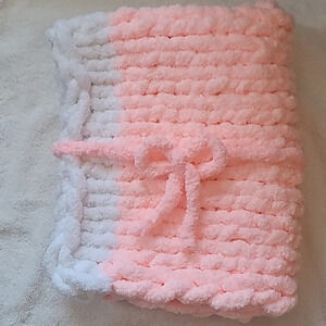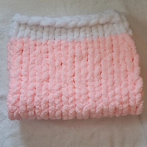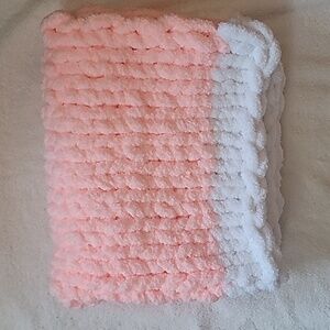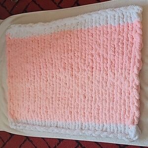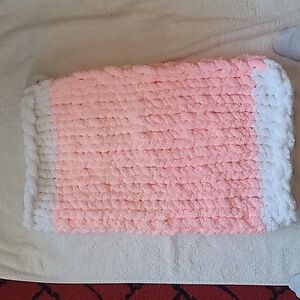 Handmade Pink & White Girl Baby Blanket. Heavy weight, very warm.