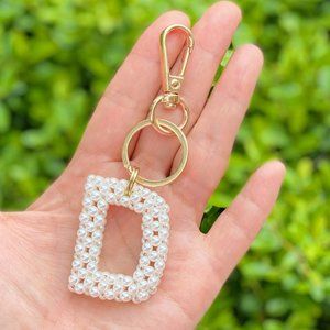 The perfect mix of classy and chic! This hand knitted pearl bead key chain is a must have to add to your key ring!