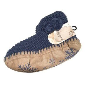 Hand Knitted Snowflake Slipper Booties Women Size 6/7 Small/Med Lined Blue