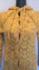 Cozy yellow knit cardigan with hood and button closure. Features a stylish pattern.