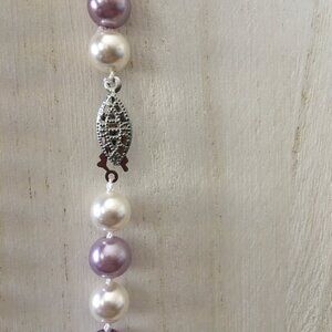 Hand Knotted Lavender & White Swarovski Pearl Necklace