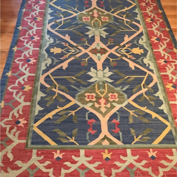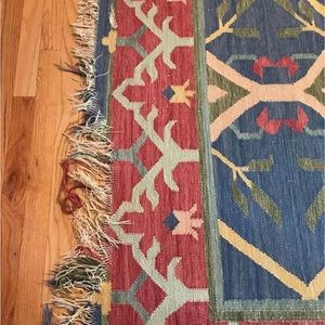 Gorgeous ethereal pattern, hand knotted wool. Does have some fraying at edges so heavily discounted. Otherwise in amazing condition. Pretty good size at slightly bigger on both ends than 5x8. Note that this is low pile, best for high traffic areas or under doors.